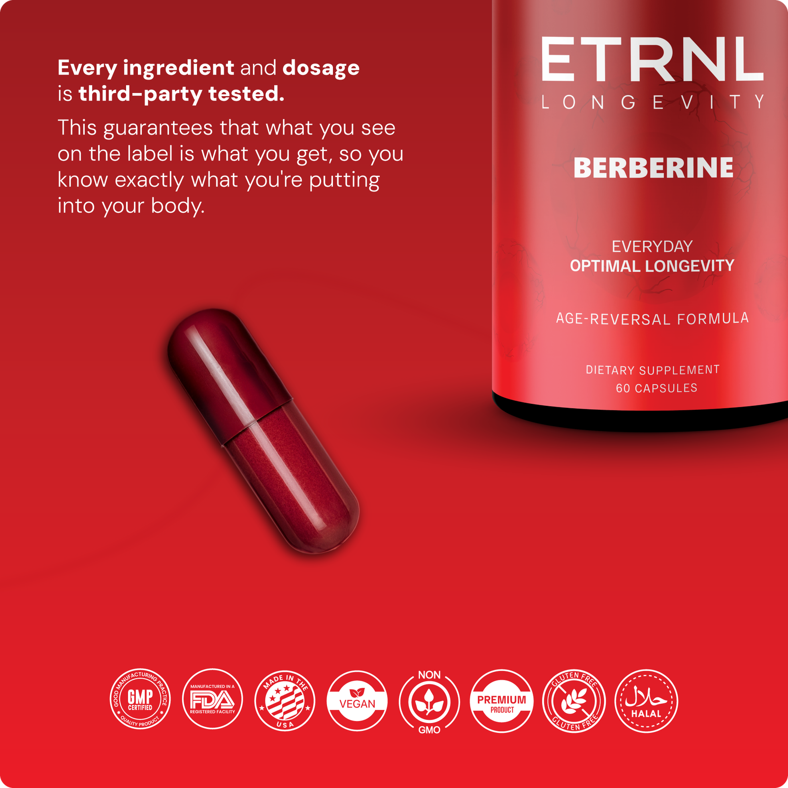 Every ingredient and its dosage are rigorously tested by third-party laboratories so you can trust exactly what goes into your body.