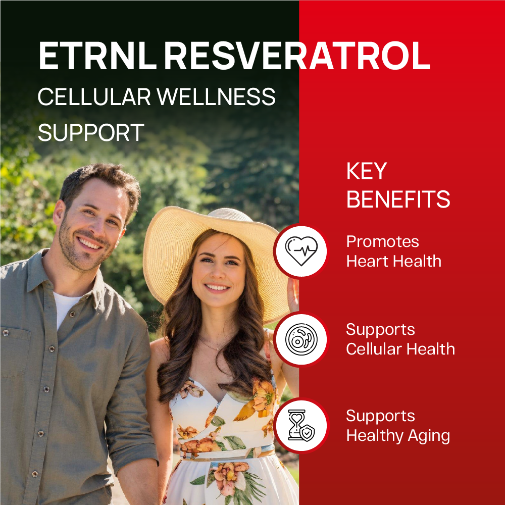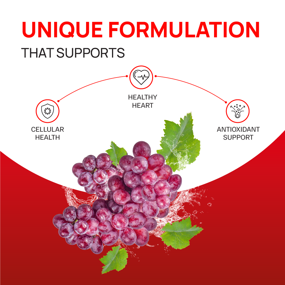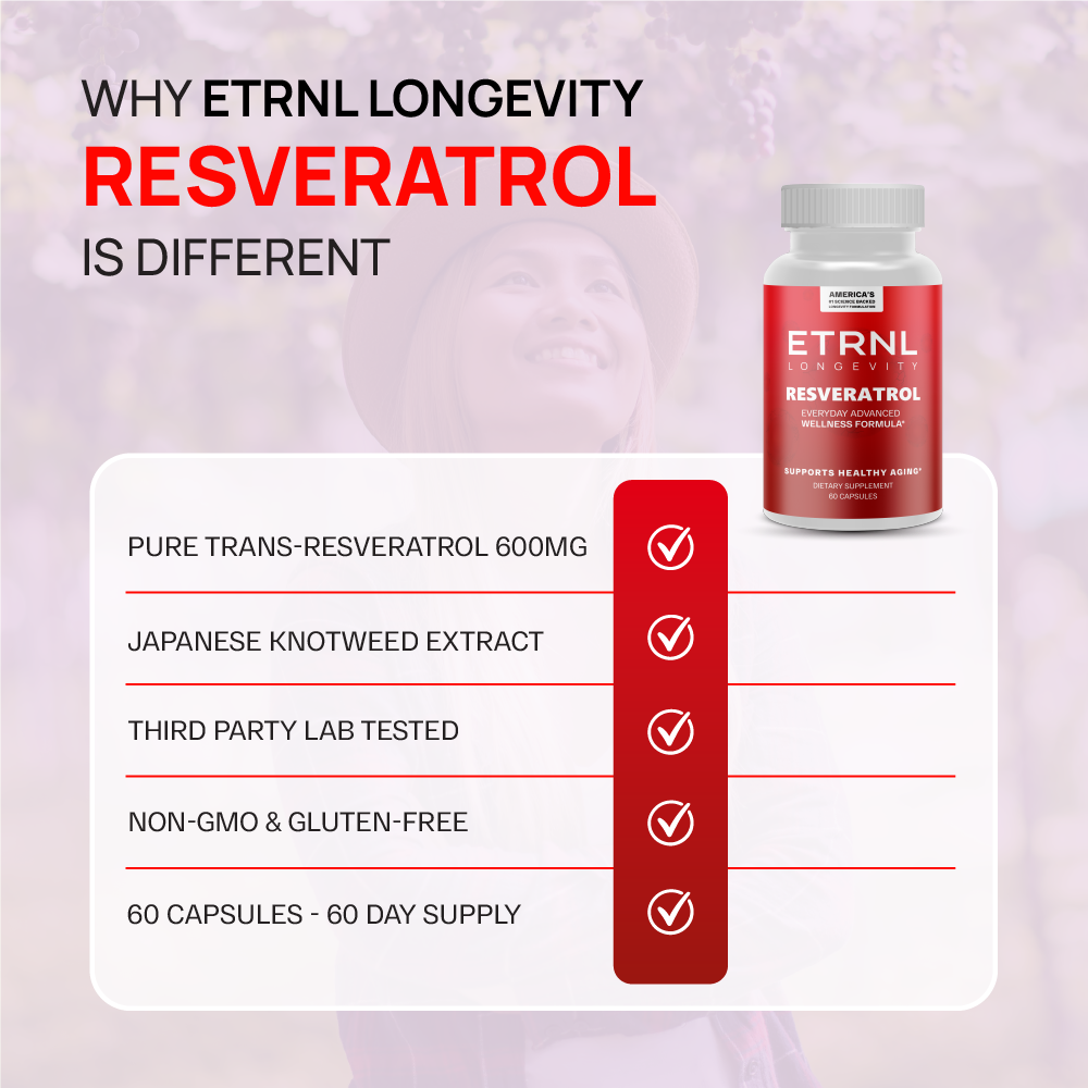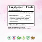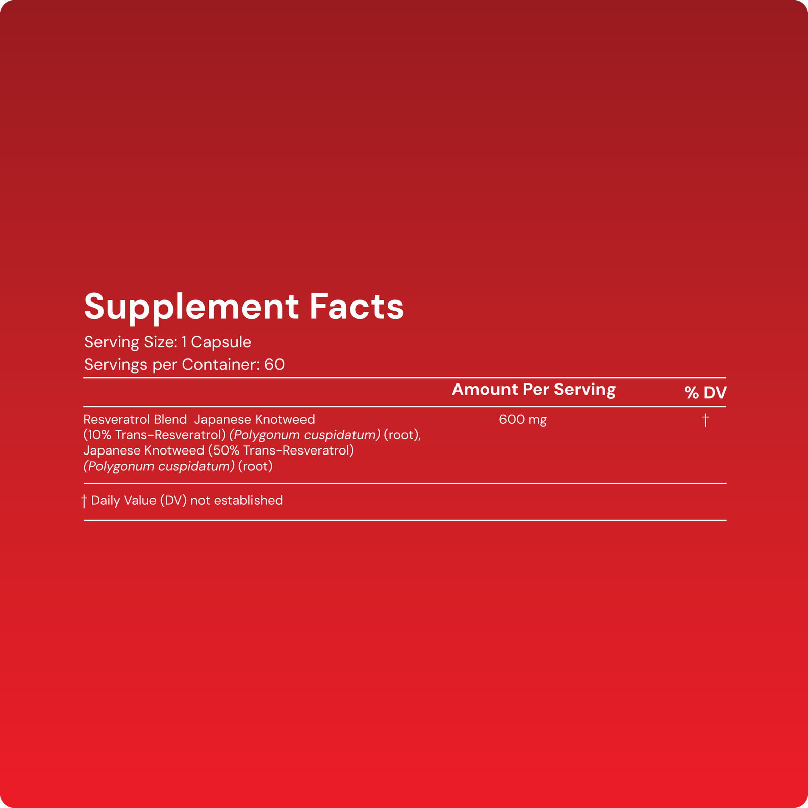 Advanced longevity and cardiovascular formula featuring powerful polyphenol compound. Powered by 600mg Resveratrol Blend from Japanese Knotweed, this supplement exhibits potent anti-oxidant properties while promoting heart health, cellular cleanup, and healthy aging through activation of longevity pathways.