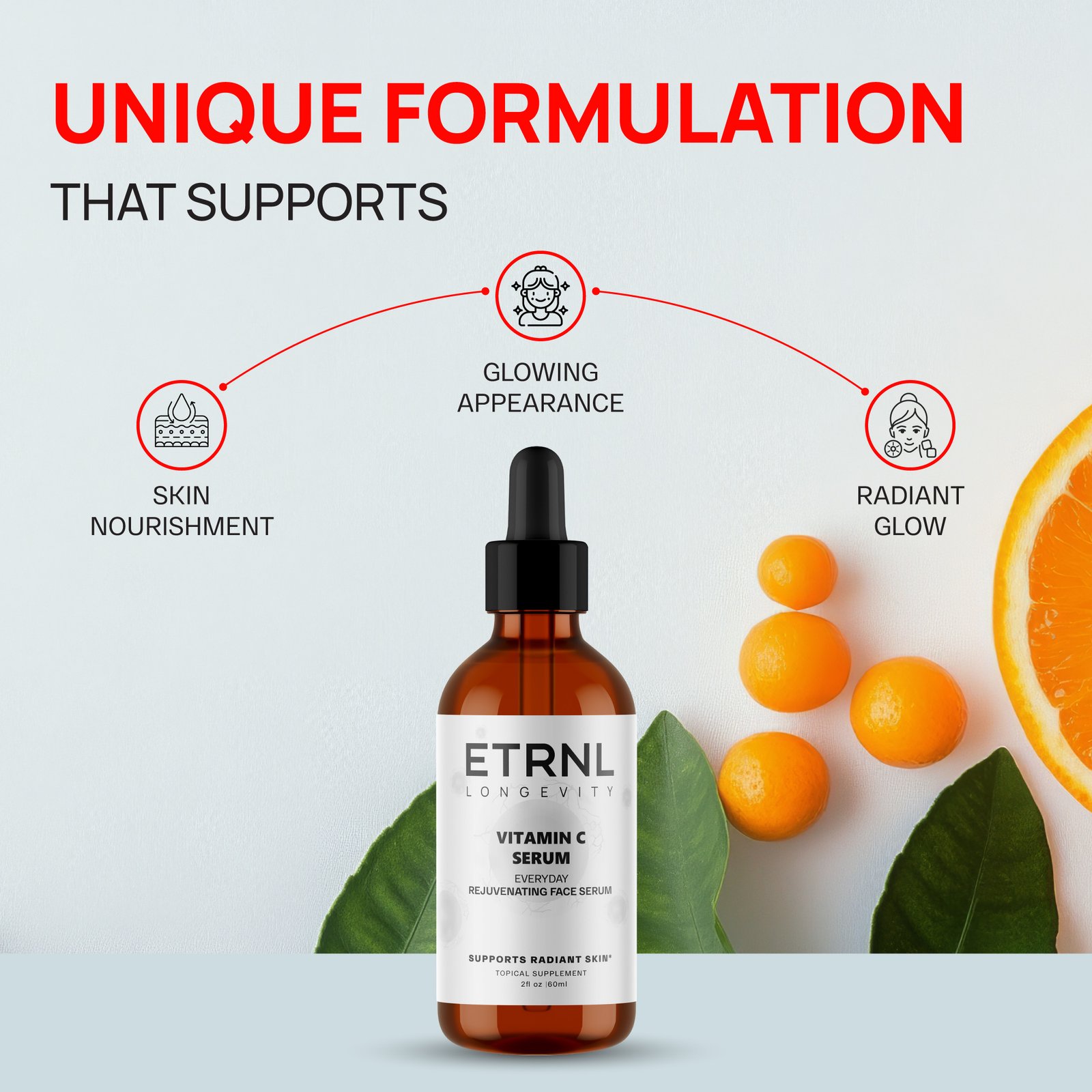 This dermatological formula is built on research into collagen synthesis, antioxidant protection, and cellular renewal. Vitamin C plays a critical role in collagen formation while protecting against UV damage and environmental stressors. Combined with hydration-supporting ingredients, it helps preserve skin elasticity, reduce visible signs of aging, and promote overall skin health.